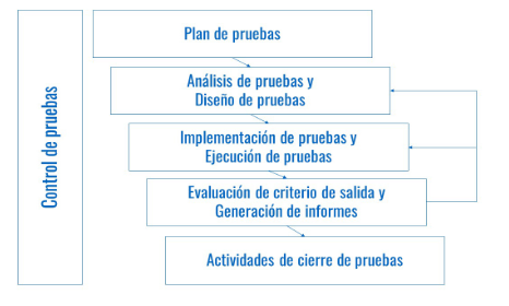 - Planificación y control: Se establecen los objetivos y el plan de pruebas y se controla el avance con respecto a lo planificado.