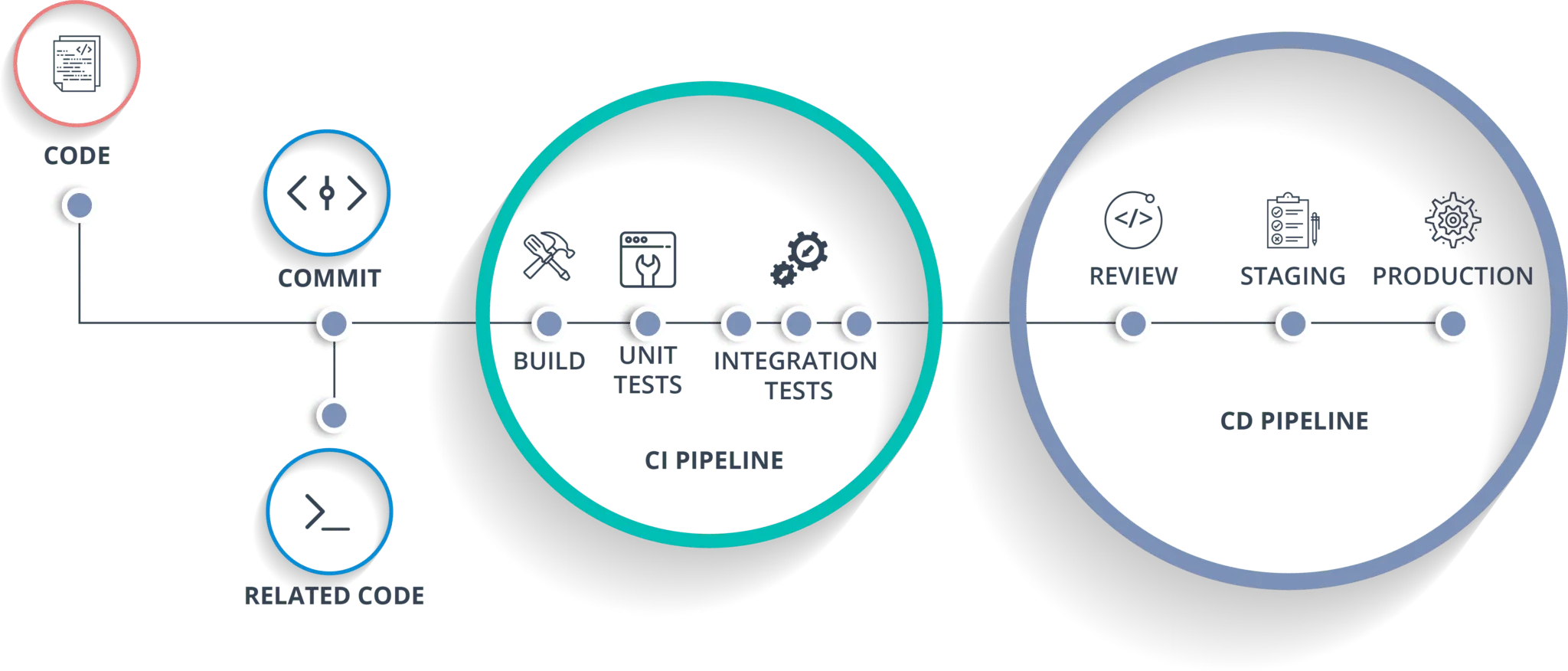 DevOps persigue pasar del código en el IDE al software funcionando en un servidor real de la forma más rápida, segura y eficiente posible.