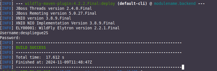 - Adjunta una captura de la consola de WildFly mostrando el estado